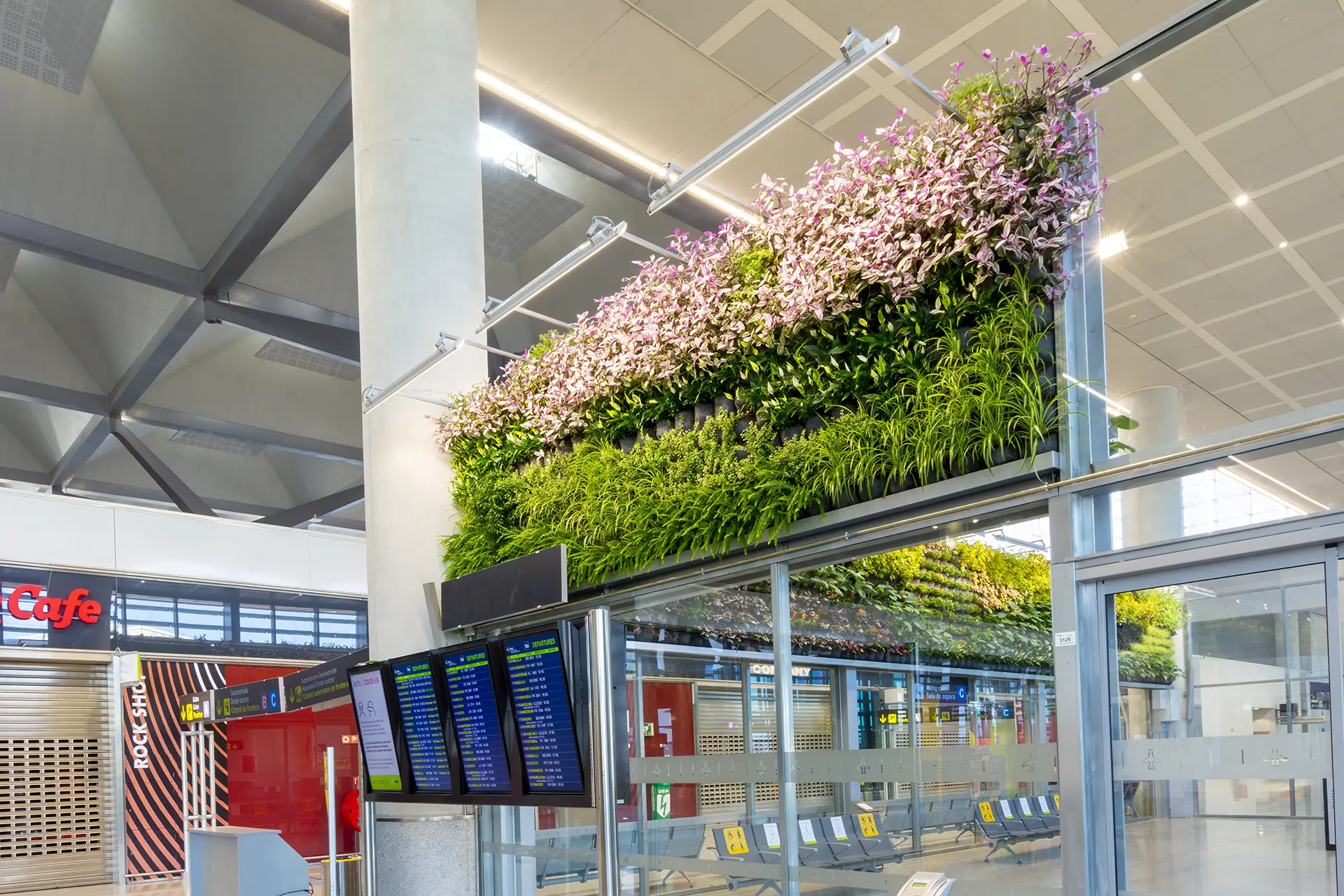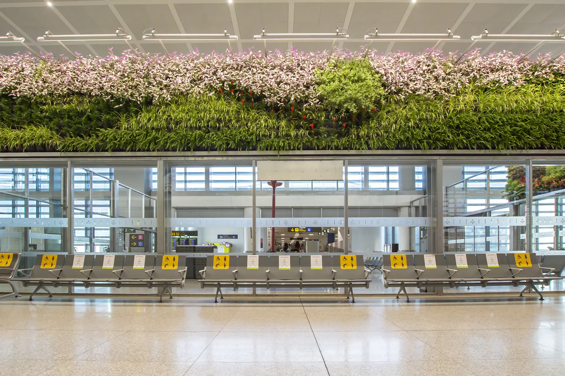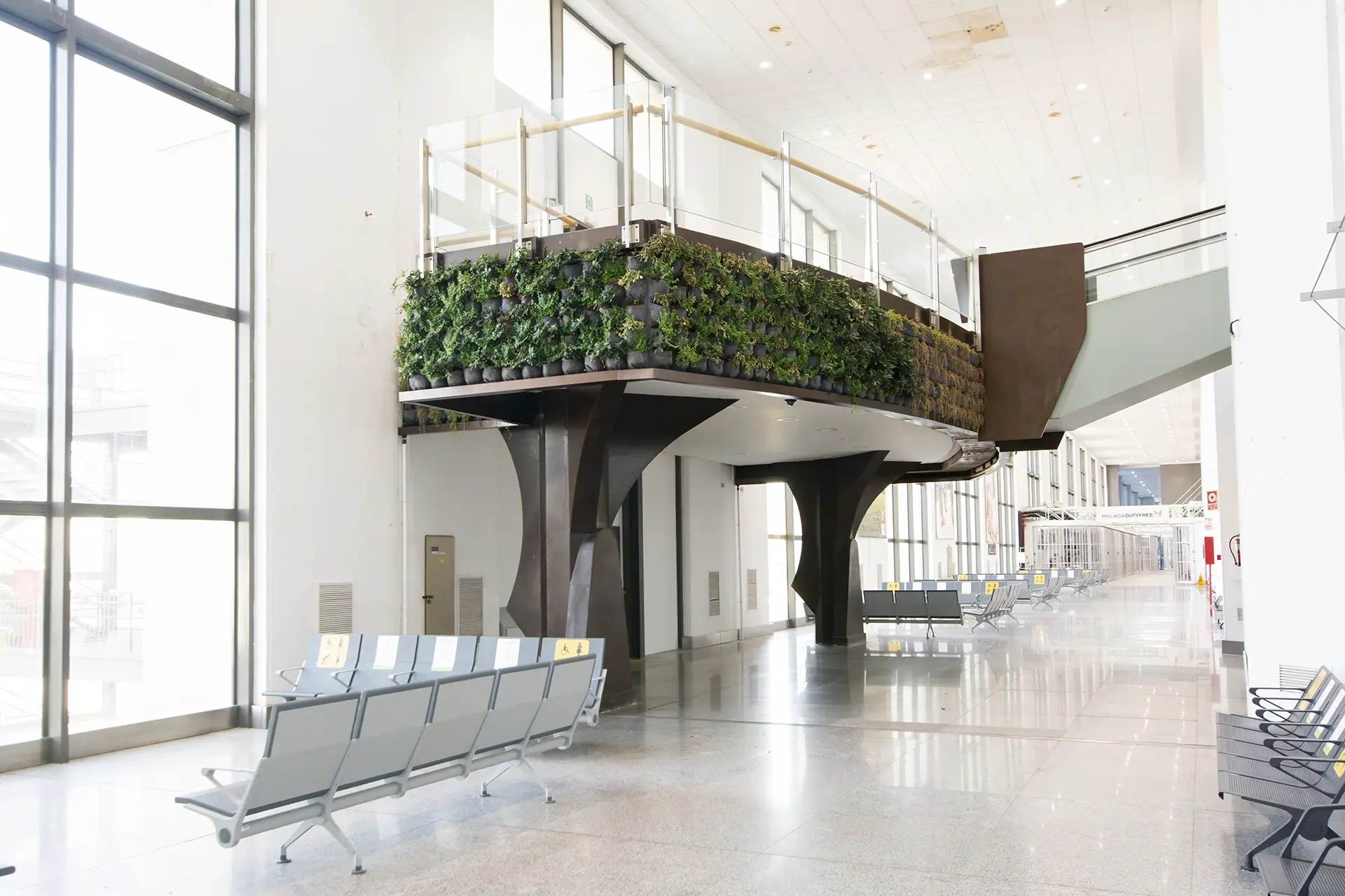 Este proyecto consistió en el diseño e instalación de cuatro jardines verticales naturales, los cuales se conformaron con mas de 10.000 unidades de plantas. Con estos jardines se busca despertar el interés de los viajeros y hacer las instalaciones más confortables para los usuarios, no sólo aportando belleza a las terminales, sino también, mejorando la calidad del aire y la temperatura. Algunos de los jardines verticales buscan, a través de su diseño, crear imágenes representativas de Málaga con las plantas.