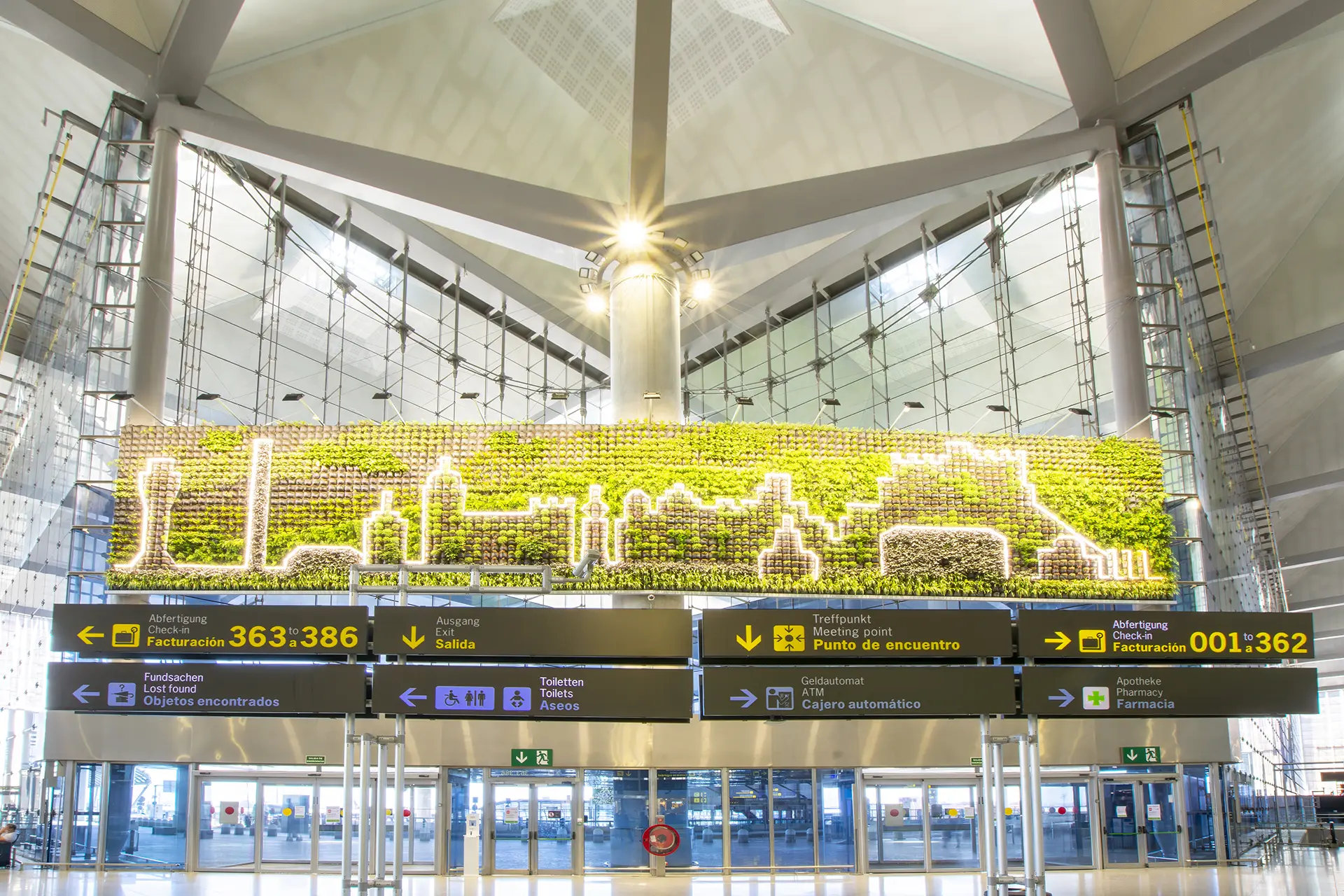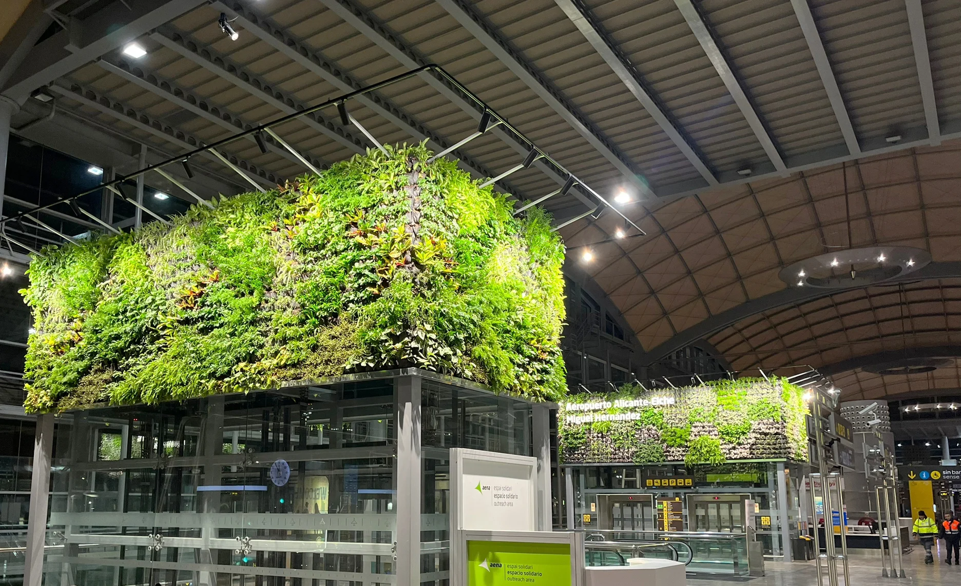 Este proyecto ha consistido en el diseño de jardines verticales naturales para el Aeropuerto Alicante – Elche Miguel Hernández con una superficie total de 125 m2. La finalidad de estos jardines es despertar el interés de los viajeros y hacer las instalaciones más confortables. Los diseños propuestos están inspirados en las ondas del Paseo de la Explanada de Alicante y la frondosidad del Palmeral de Elche, utilizando especies capaces de desarrollarse en un espacio interior.