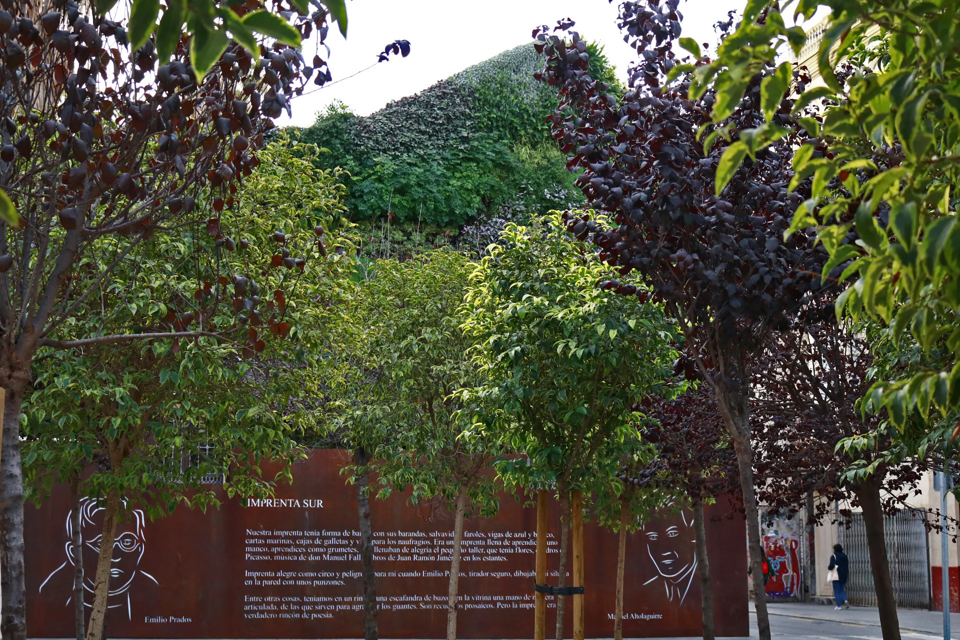 El proyecto cuenta también con un poema del malagueño Manuel Altolaguirre grabado en una placa de acero corten. Este elemento añade un toque romántico al espacio, creando una atmósfera única.